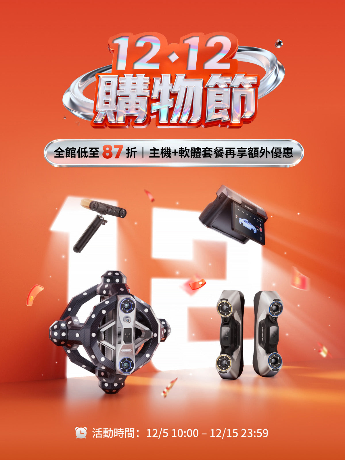 便攜式紅外雷射與結構光 3D 掃描儀,體積精度高達 0.05+0.1mm x L(m),並支援戶外掃描。