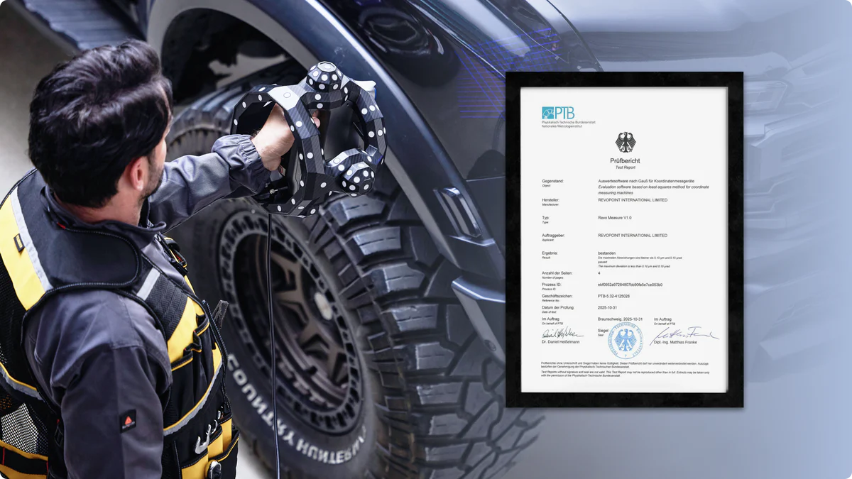 Revo Measure 的量測演算法已通過德國聯邦物理技術研究院的全面性評估。此項認證確認 Revo Measure 符合國際認可的精密與可靠性標準。