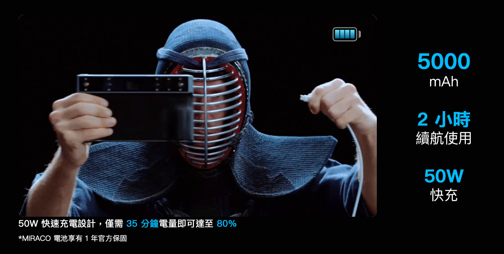 50W 快速充電設計,僅需 35 分鐘電量即可達至 80%