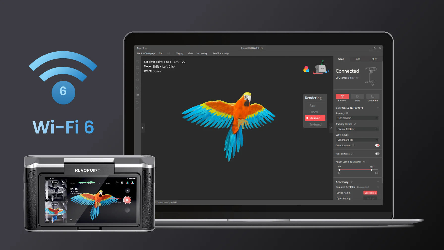 以 15 fps 的掃描速度快速建模小型或大型的 3D 目標模型。