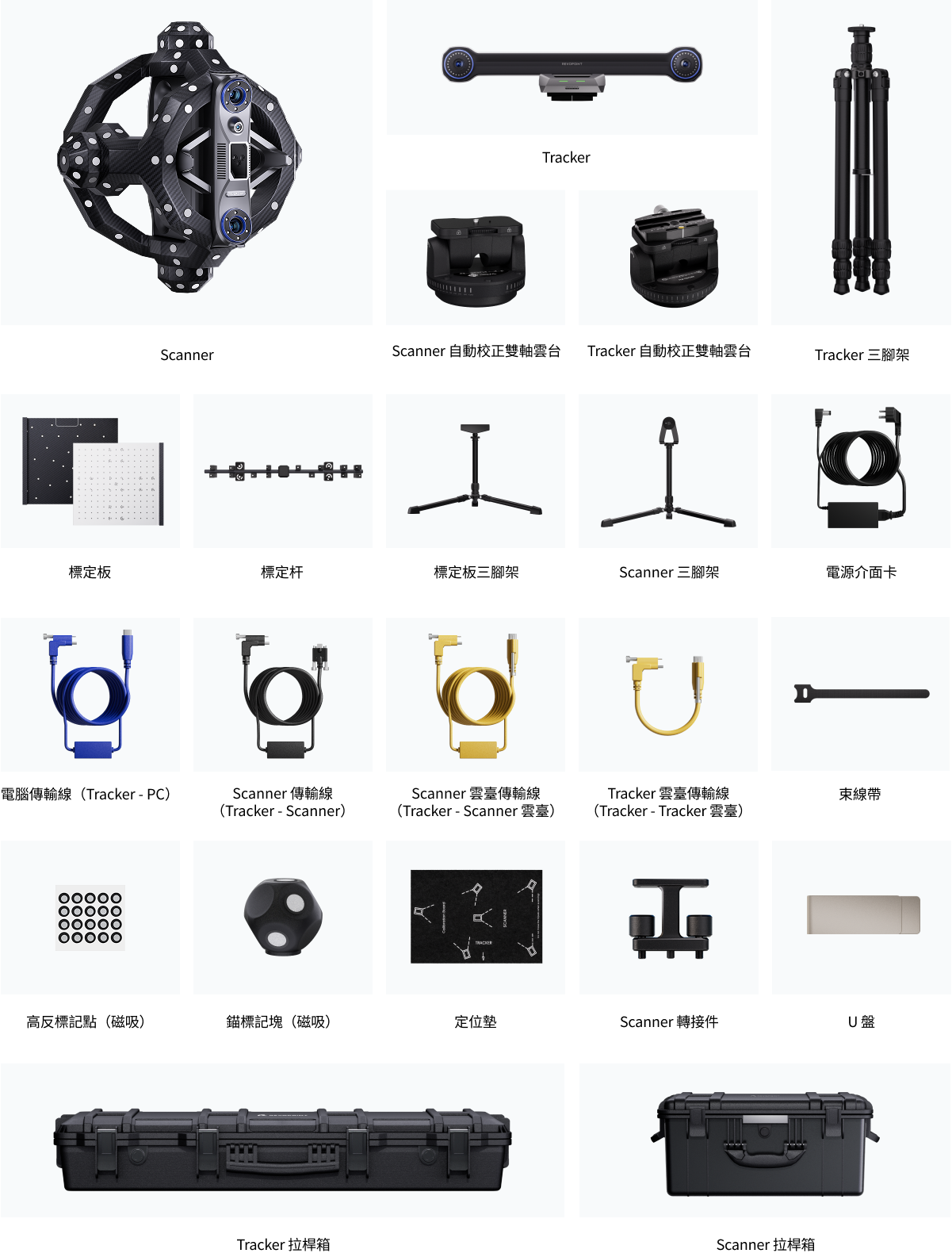 Trackit 採用最前沿的智慧光學追蹤技術,實時追蹤定位並採集精準的三維資料,無需在物體表面貼上標記點。依託全域性座標控制和實時誤差補償技術,可有效減少累計誤差,搭配雙攝像頭基站系統,可高效掃描 10 毫米至 6 米的各種工件,提升整體工作效率,使掃描過程更加智慧化、高效化。